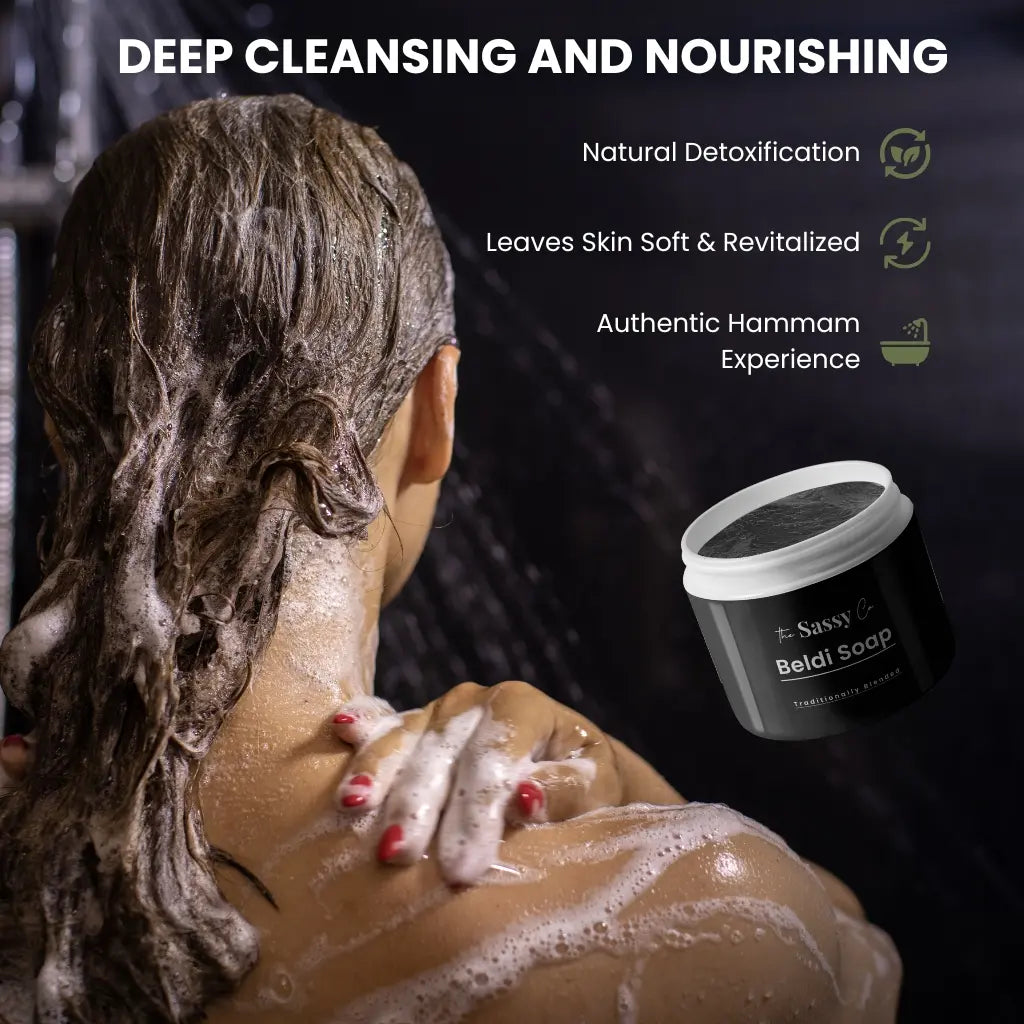 Beware of cheap replicas - The Sassyâ„¢ offers the authentic Black Beldi Soap for a luxurious cleansing experience.